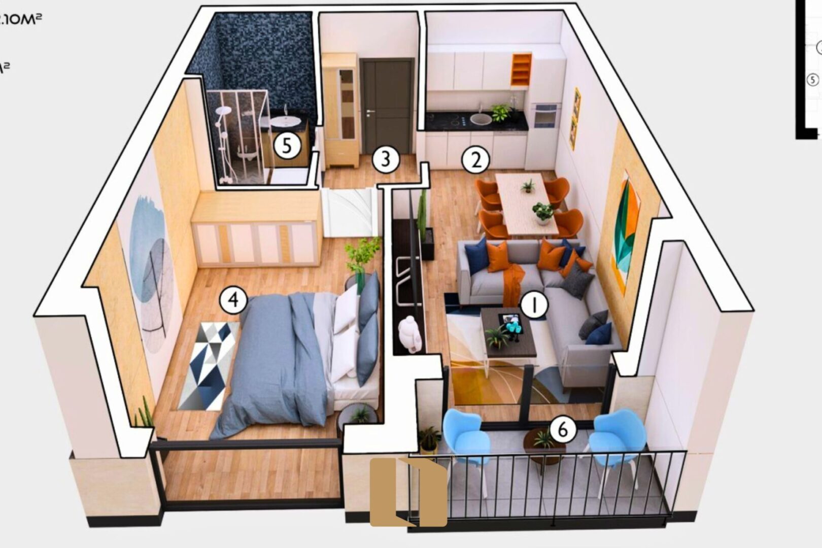 Banesat e disponueshme për shitje ndodhen në katin e tretë (3) dhe të katërt (4) të Kompleksit, me një sipërfaqe totale prej 45.19 m2.