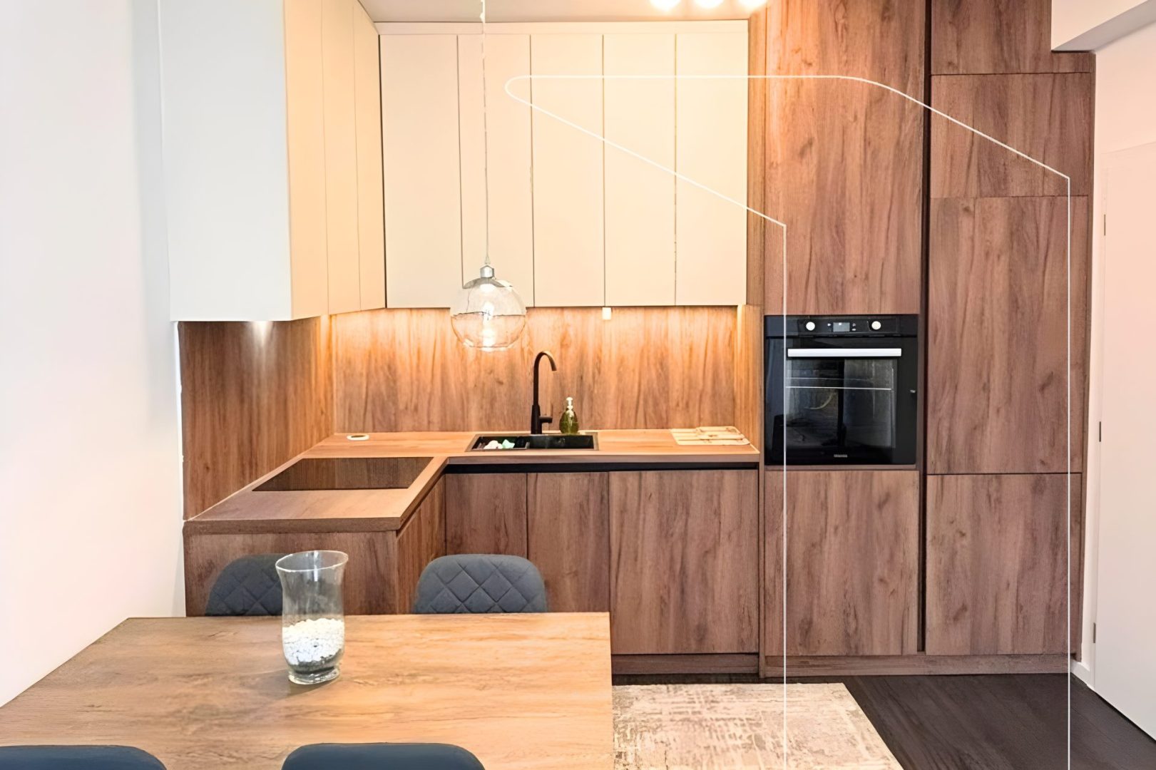 ▪ Sallon i gjerë dhe i ndriçuar natyralisht, me kuzhinë të hapur