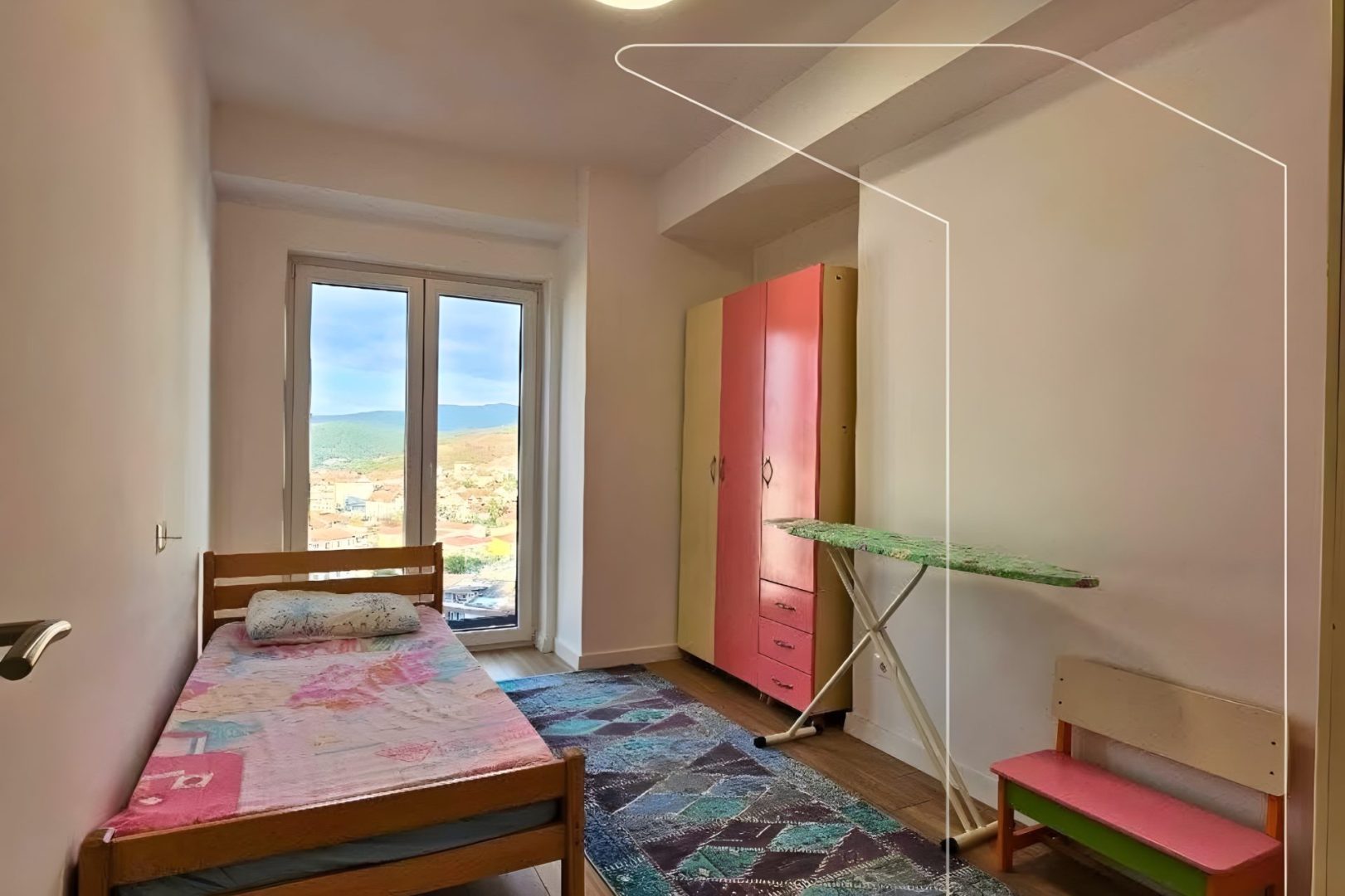 Ofrohet me qira një banesë funksionale prej 92 m² në katin e 4-të, me ngrohje qendrore Termokos, e përshtatshme si për banim ashtu edhe për zyre.Hapësira ka organizim prak